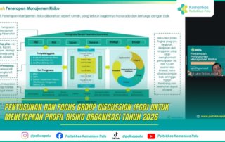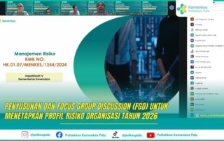 Dalam rangka memperkuat penerapan Manajemen Risiko, Poltekkes Kemenkes Palu melaksanakan Pertemuan Penyusunan dan Focus Group Discussion (FGD) Penetapan Profil Risiko Organisasi Tahun 2026 pada Kamis, 29 Januari 2026. Kegiatan ini diikuti oleh unsur manajemen, pengelola, serta perwakilan Jurusan dan Program Studi di lingkungan Poltekkes Kemenkes Palu.