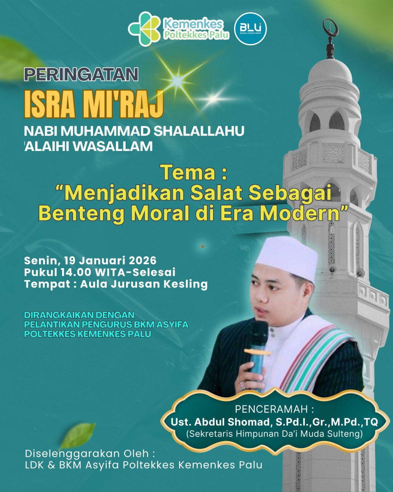 Dalam rangka memperingati Isra Mi’raj Nabi Muhammad SAW, Lembaga Dakwah Kampus (LDK) dan Badan Kemakmuran Masjid (BKM) Assyifa Poltekkes Kemenkes Palu menyelenggarakan kegiatan keagamaan dengan tema: