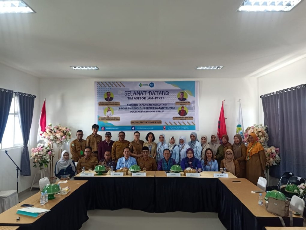 Program Studi D-III Keperawatan Kampus Toli-Toli, Poltekkes Kemenkes Palu, telah melaksanakan kegiatan Visitasi Akreditasi (Asesmen Lapangan) pada tanggal 18–21 November 2025. Kegiatan ini merupakan bagian penting dari upaya peningkatan mutu pendidikan serta pemenuhan standar akreditasi dari LAM-PTKes sebagai lembaga akreditasi mandiri di bidang kesehatan.