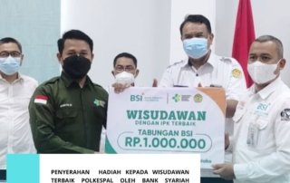 Penyerahan Hadiah Berupa Tabungan Kepada Lulusan Terbaik Polkespal yang Bersumber Dari Bank Syariah Indonesia