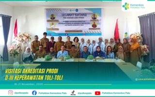 Program Studi D-III Keperawatan Kampus Toli-Toli, Poltekkes Kemenkes Palu, telah melaksanakan kegiatan Visitasi Akreditasi (Asesmen Lapangan) pada tanggal 18–21 November 2025. Kegiatan ini merupakan bagian penting dari upaya peningkatan mutu pendidikan serta pemenuhan standar akreditasi dari LAM-PTKes sebagai lembaga akreditasi mandiri di bidang kesehatan.